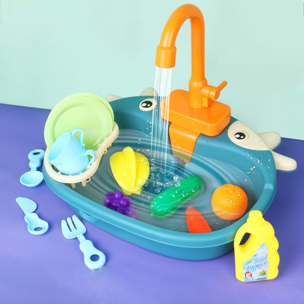 É prazeroso, pois a criança se sente útil ao replicar de forma lúdica uma das tarefas que ela vê seus tutores fazendo diariamente, lavar louça e alimentos.