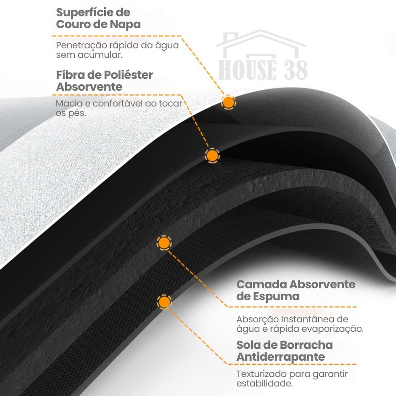 Tecnologia de super absorção: A combinação de camadas absorventes e antiderrapante garante a qualidade superior aos tapetes comuns.