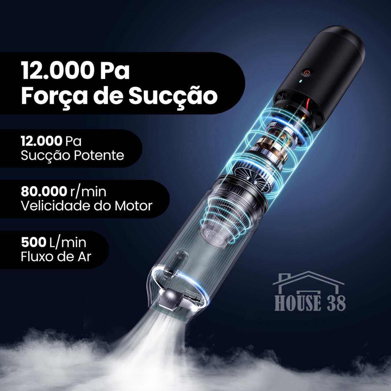 O Vaccun Aspirador Portátil é altamente eficiente na remoção rápida de sujeira, com um motor de alta velocidade gerando potência de sucção concentrada e 2000mAh de bateria que proporciona aproximadamente 25 minutos de ótimo desempenho para aspirar seu carro com uma única carga completa.